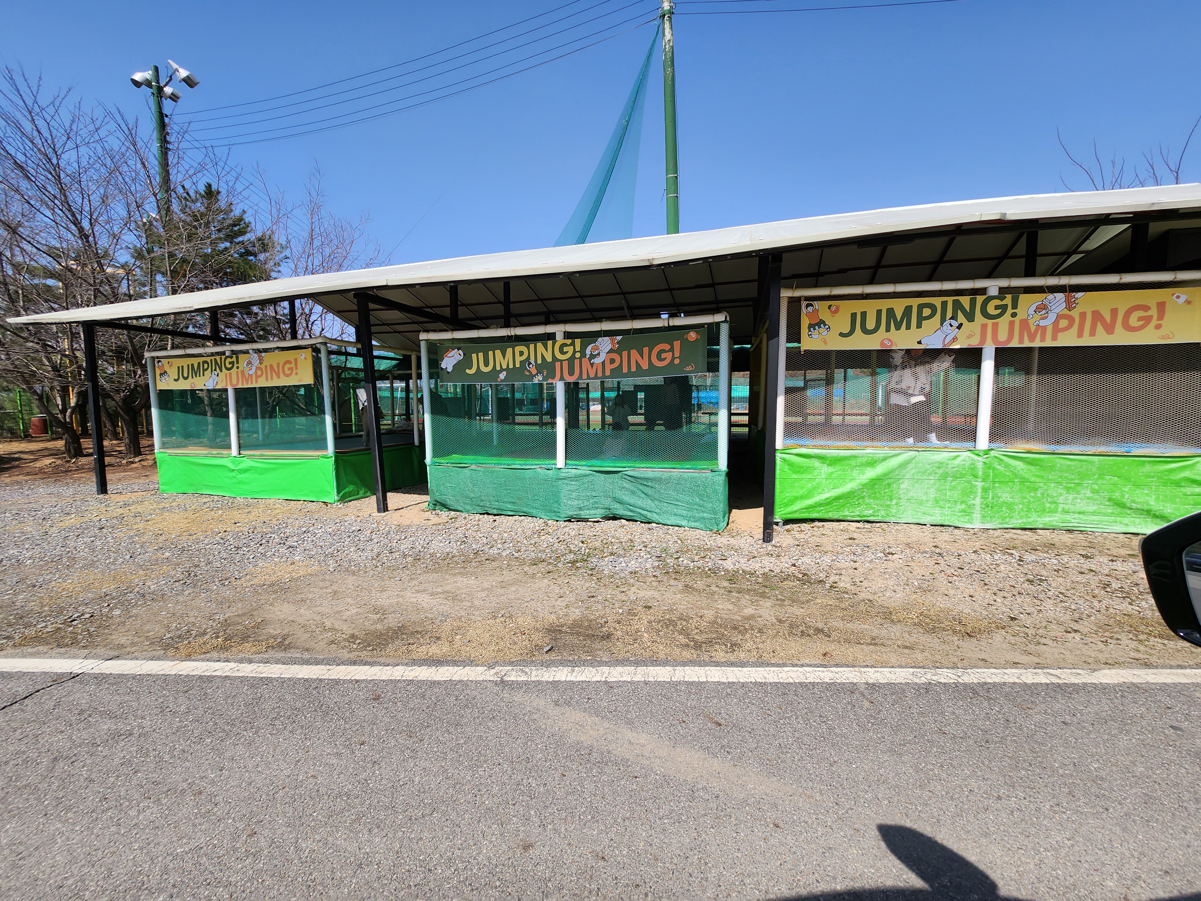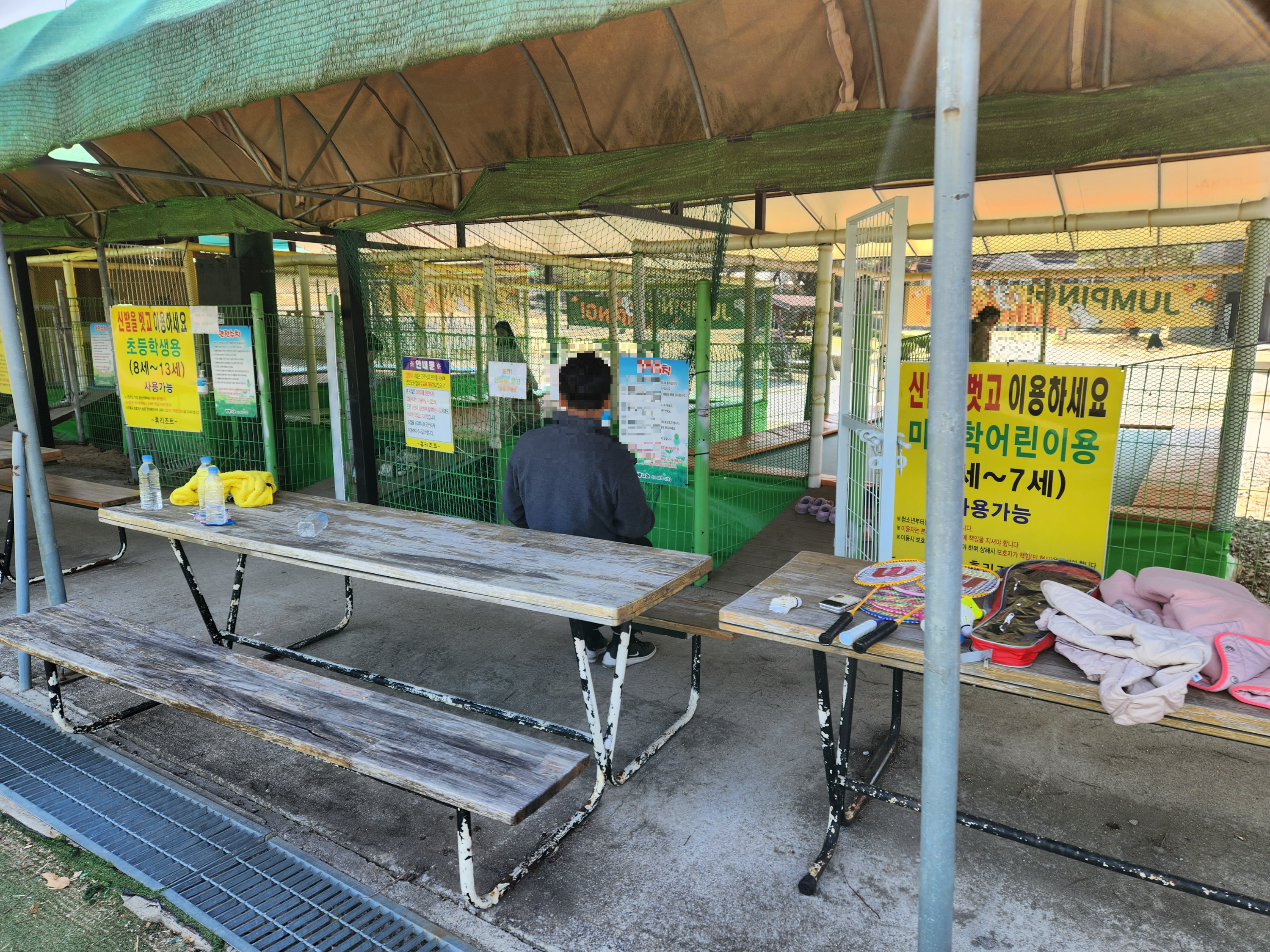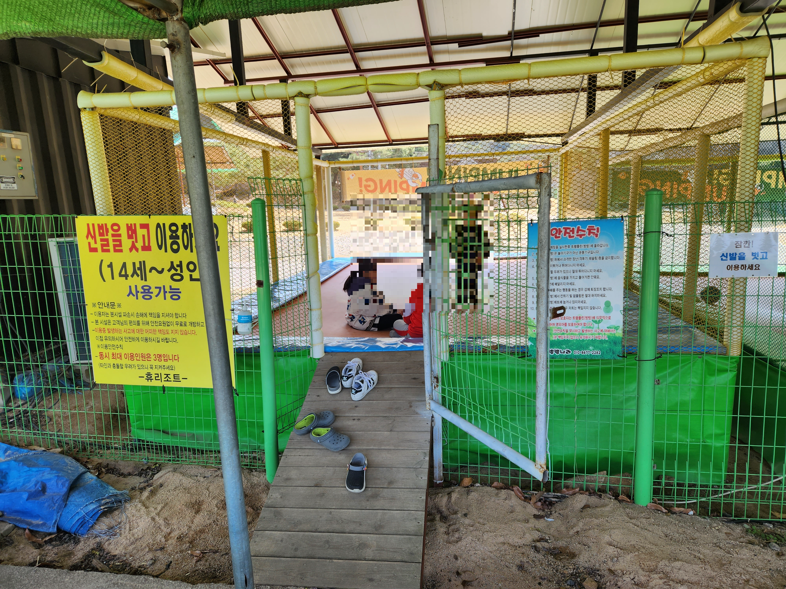 트램펄린 앞쪽 모습입니다. 연령별로 총 3개가 준비되어 있어 부담 없이 이용할 수 있습니다.