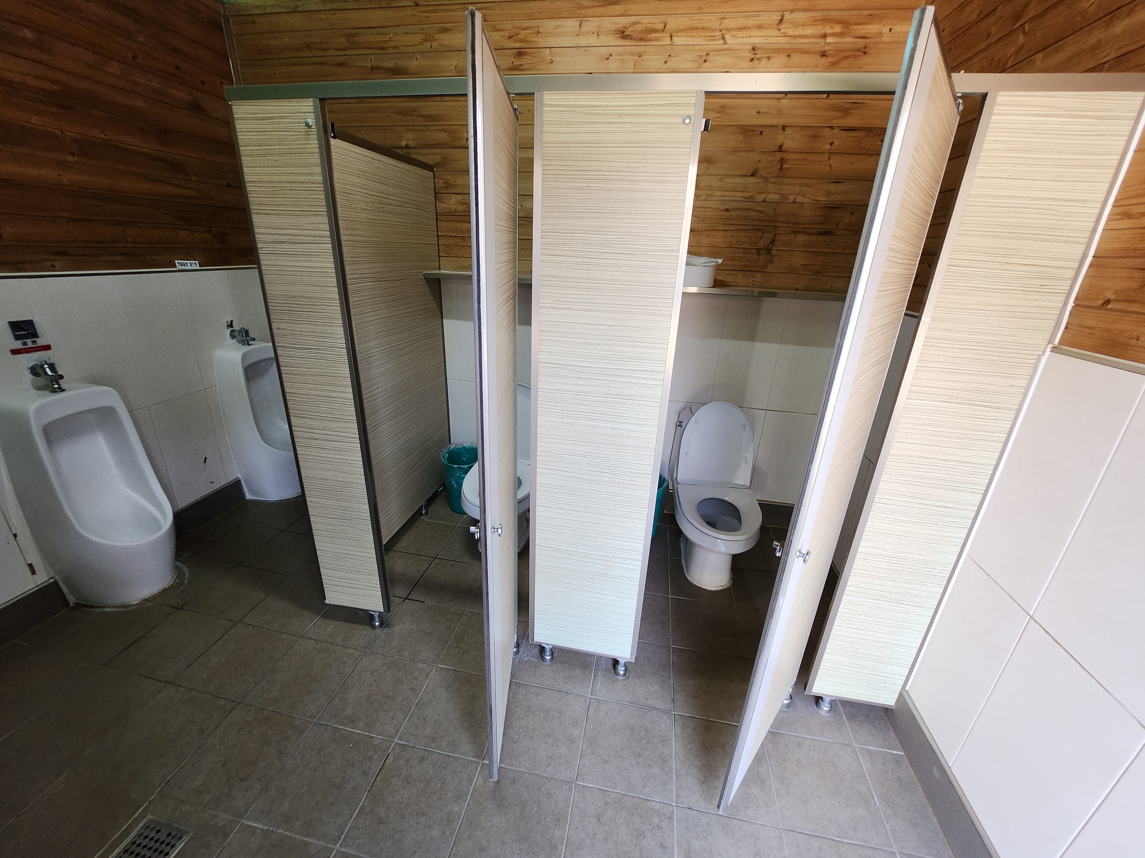 화장실과 개수대는 굉장히 많이 사이트가 있는 만큼 중간중간마다 많이 배치되어 있습니다. 이곳은 50번 사이트 앞에 제가 이용한 사이트에서 가까운 화장실로 온수도 잘 나오고 깔끔하게 유지되고 있습니다.