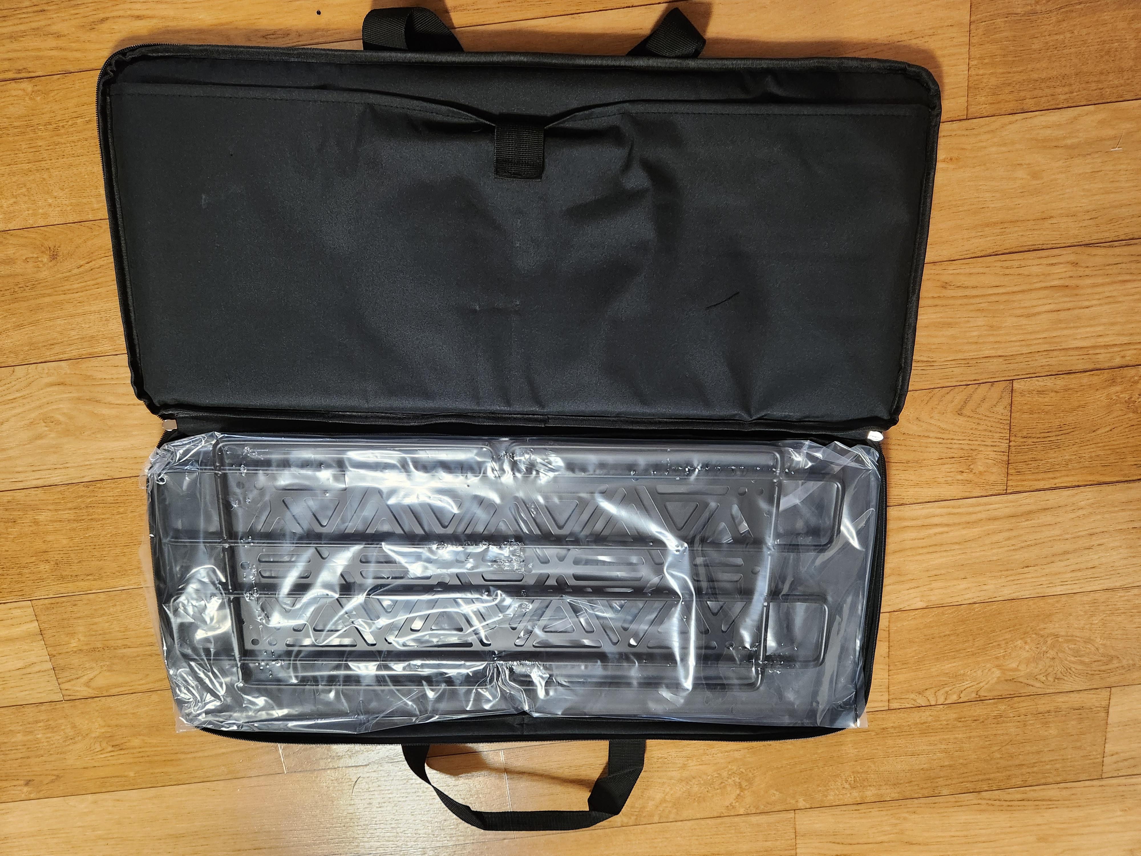 가방의 중앙에는 제품의 상판이 비닐에 싸여서 있었고 양쪽 사이드포켓에는 사이드 프레임이 들어있었습니다.
