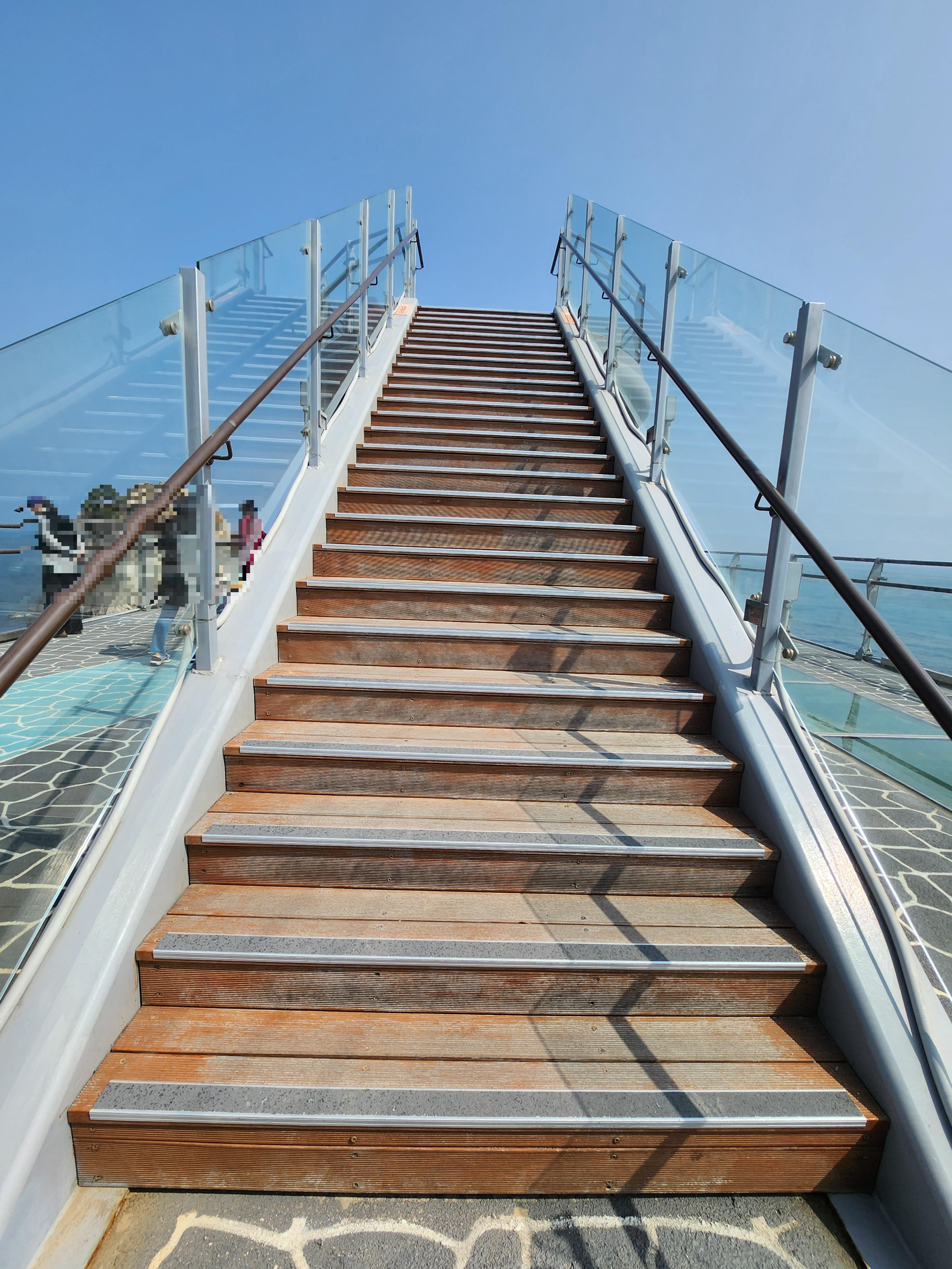 전망대에 올라서면 바다아래쪽을 내려다볼 수 있는 투명유리가 있지만 관람료가 없어 관리가 잘 안 돼서 그런지 뿌옇게 보이는 게 좀 아쉬웠습니다.